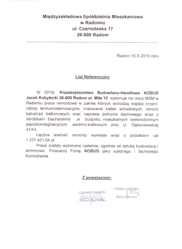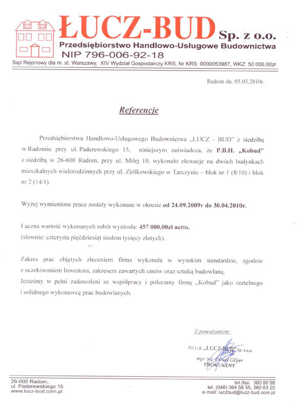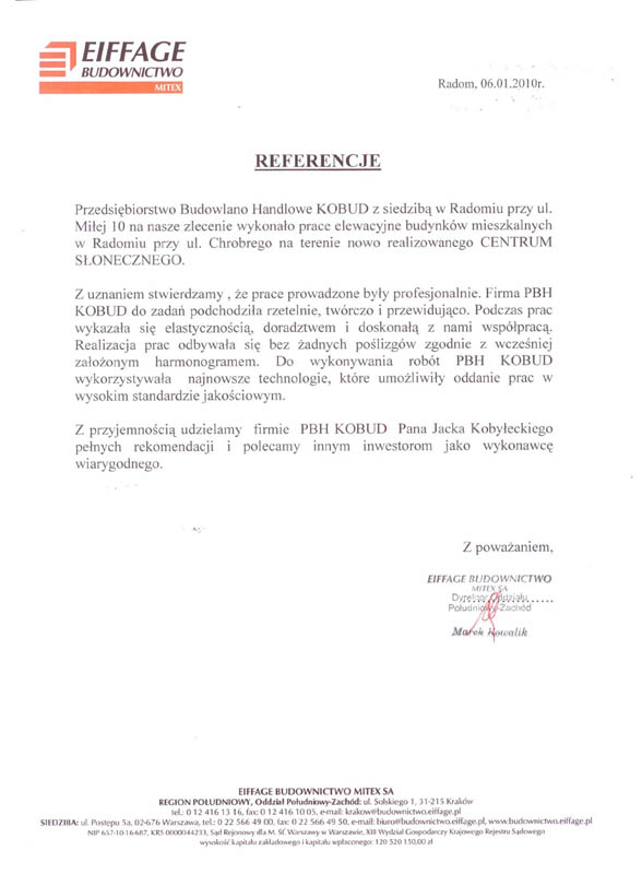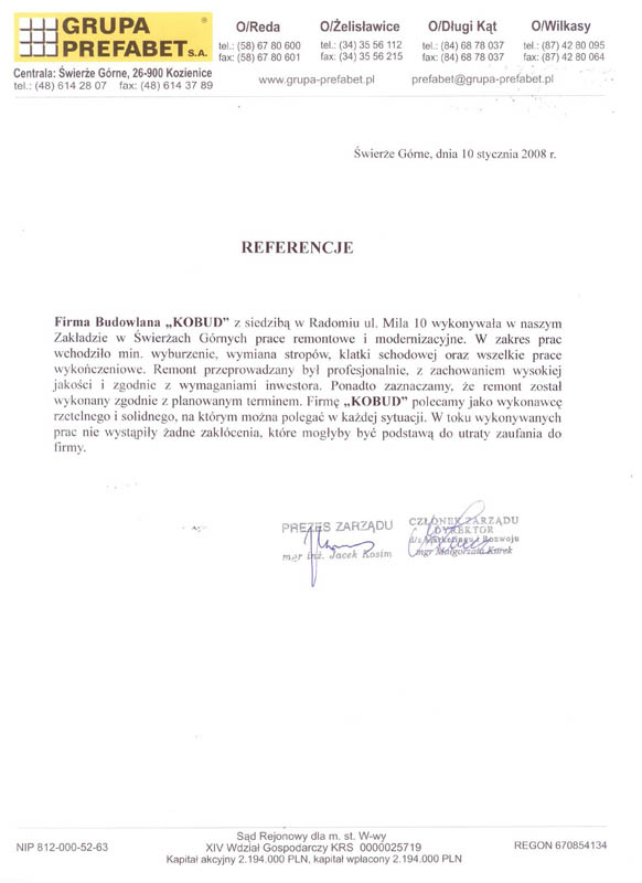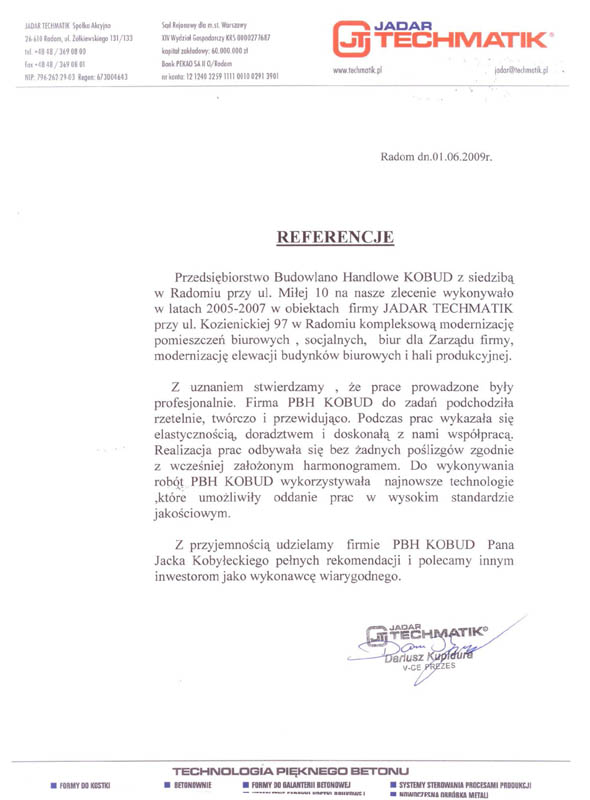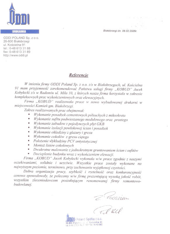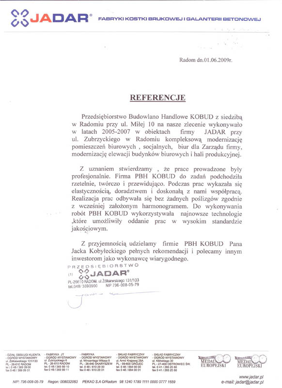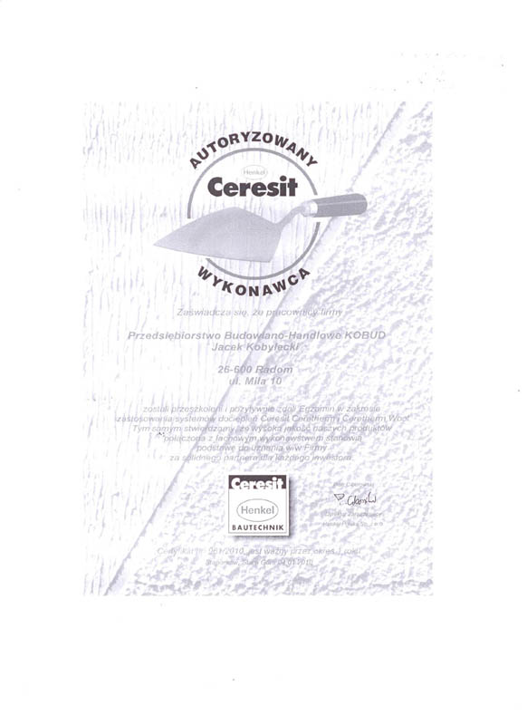 | Przedsiębiorstwo Budowlano - Handlowe KOBUD jest firmą działającą na terenie Radomia i okolic od 1997 roku. Kadra kierownicza posiada odpowiednie przygotowanie merytoryczne oraz